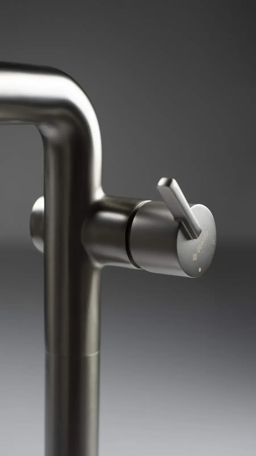 Model Silia to smukły, opływowy kształt i skrupulatnie zaprojektowana dźwignia. Boczna dźwignia zapewnia utrzymanie baterii w czystości podczas użytkowania, ponieważ na armaturze nie powstają zacieki z kapiącej z rąk wody. Jej uchwyt w kształcie sześcianu harmonijnie przenika się z walcami korpusu i wylewki, tworząc wyjątkowy design. Bateria Silia jest prosta i cechuje się dużą praktycznością. Doskonale wpisuje się w trend wabi-sabi inspirowany japońską estetyką. Jej wyrafinowana geometria i szeroka gama kolorów zapewniają produktowi oryginalny i nietuzinkowy wygląd. Bateria wykończona jest w oryginalnym kolorze titanium.
