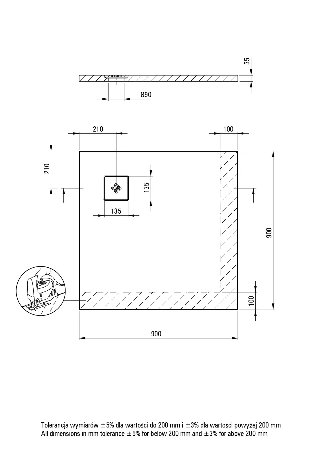 Deante Silia Brodzik akrylowy kwadratowy 90x90 cm – dane techniczne i specyfikacja