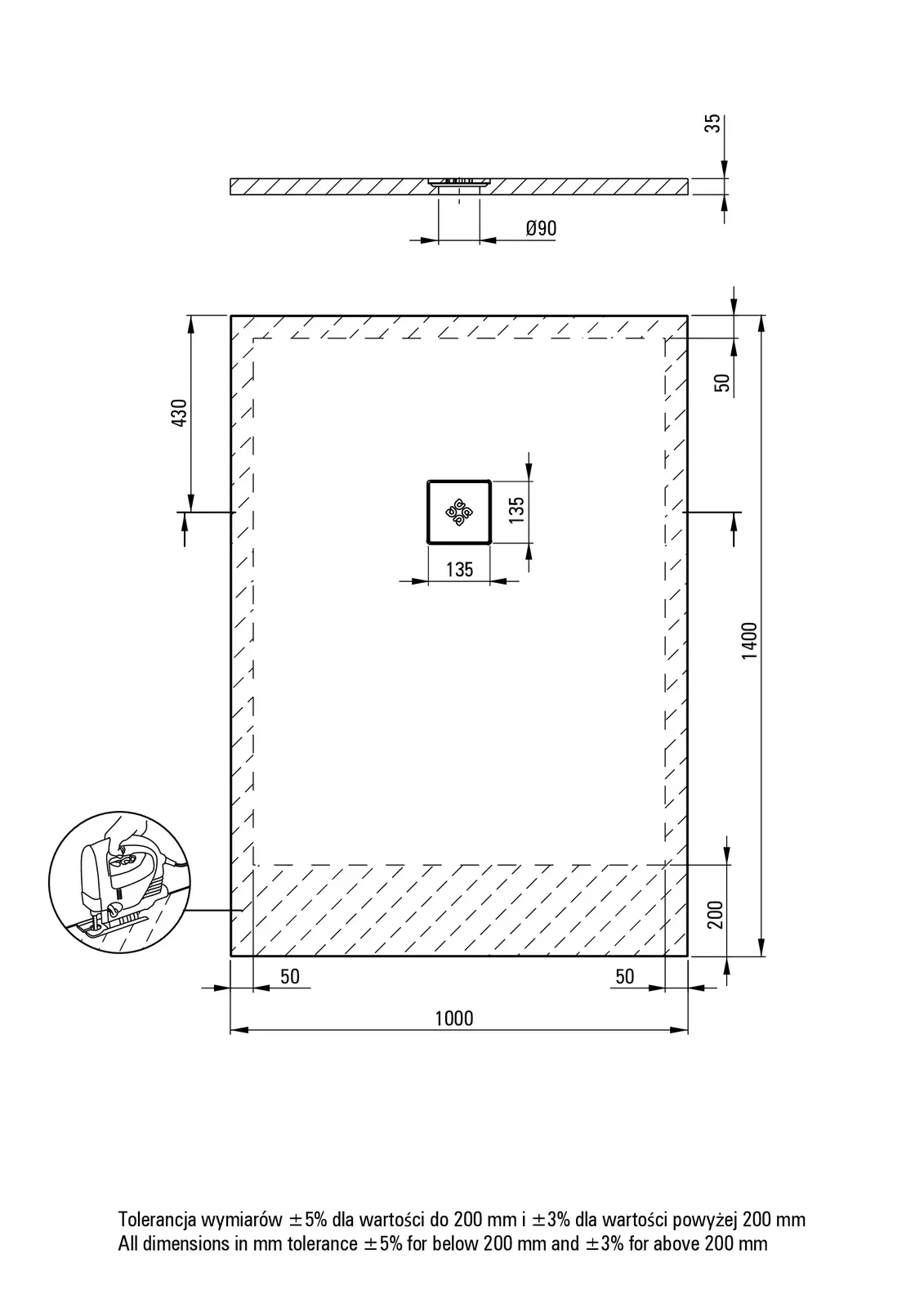 – Sposób instalacji: bezpośrednio na wylewce, na podparciu materiałem konstrukcyjnym, na poziomie podłogi