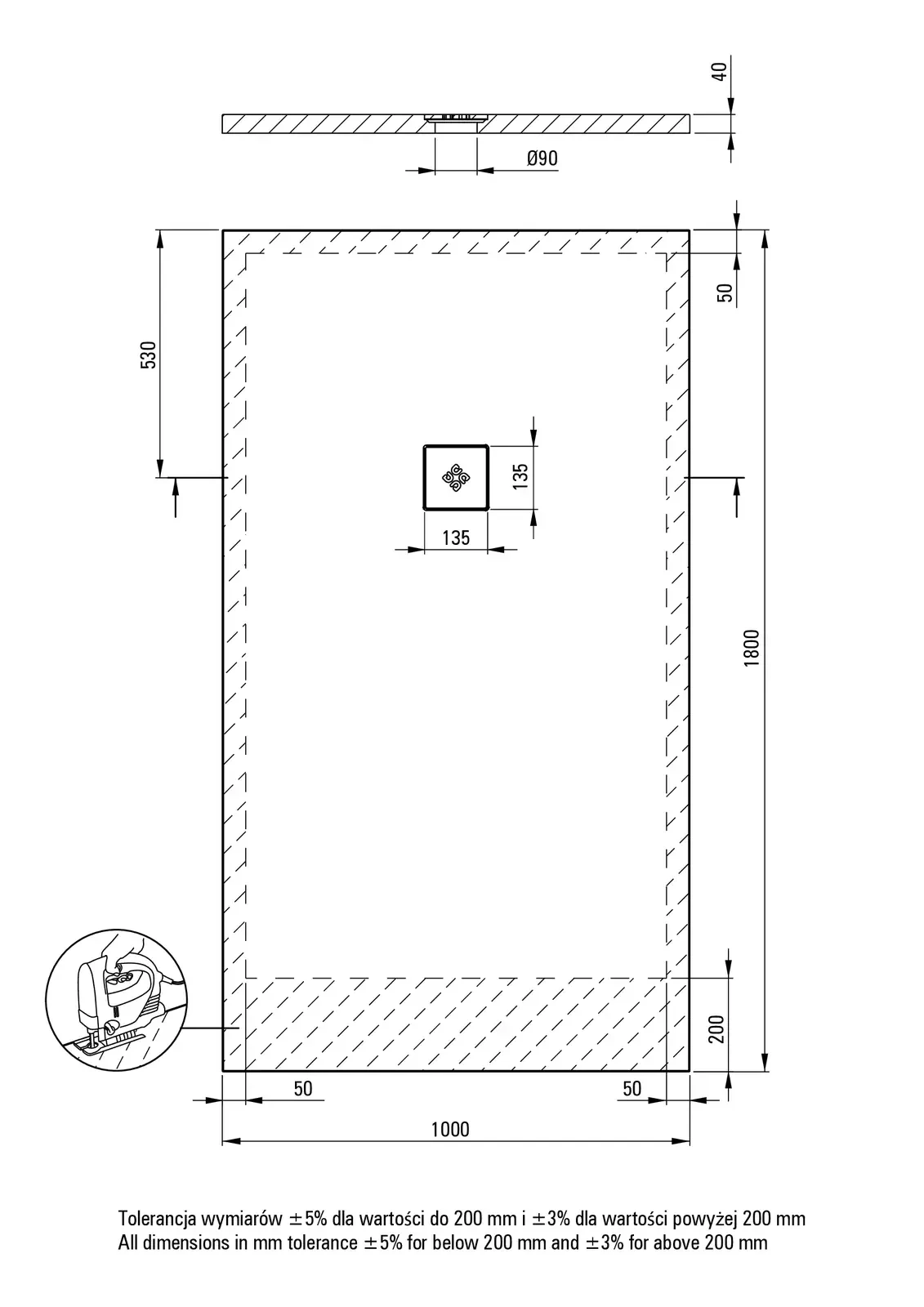 – Sposób instalacji: bezpośrednio na wylewce, na podparciu materiałem konstrukcyjnym, na poziomie podłogi
