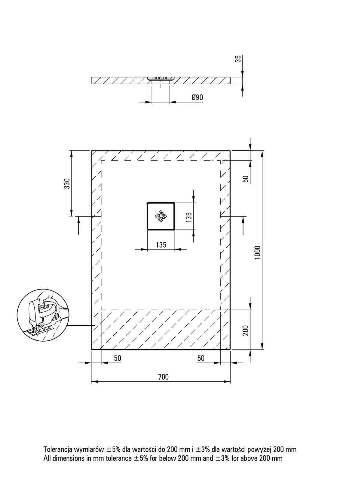 – Sposób instalacji: bezpośrednio na wylewce, na podparciu materiałem konstrukcyjnym, na poziomie podłogi