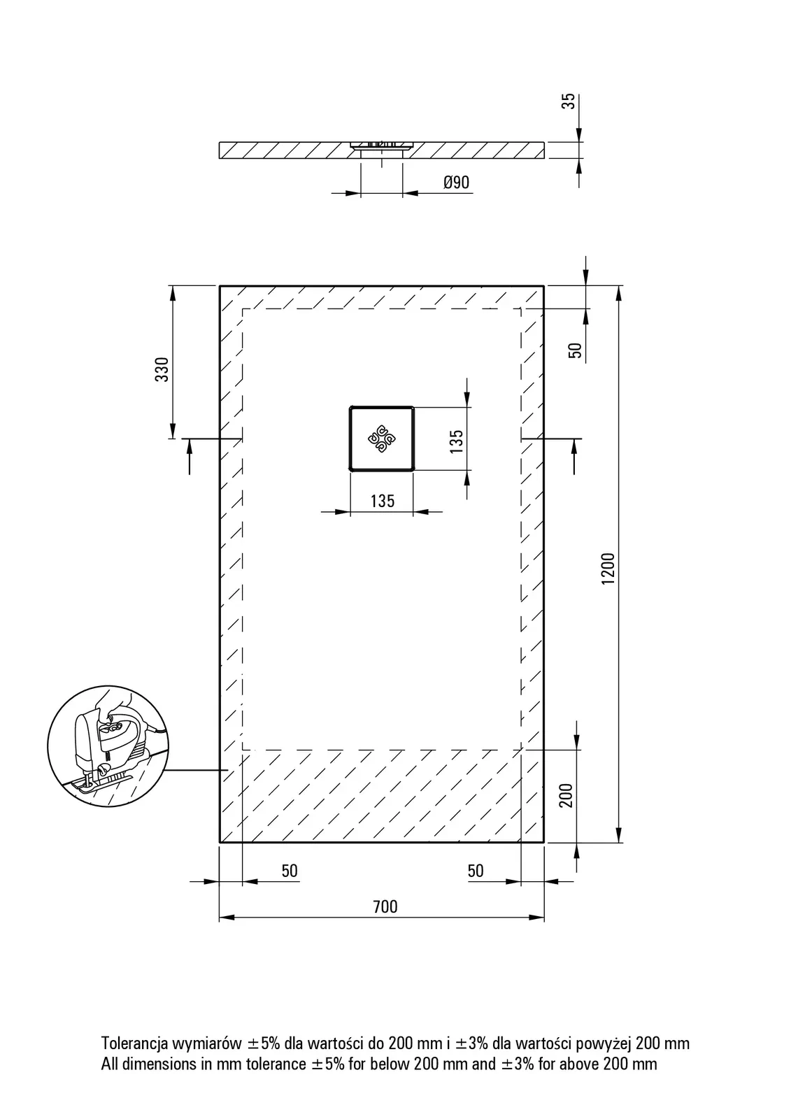 – Sposób instalacji: bezpośrednio na wylewce, na podparciu materiałem konstrukcyjnym, na poziomie podłogi