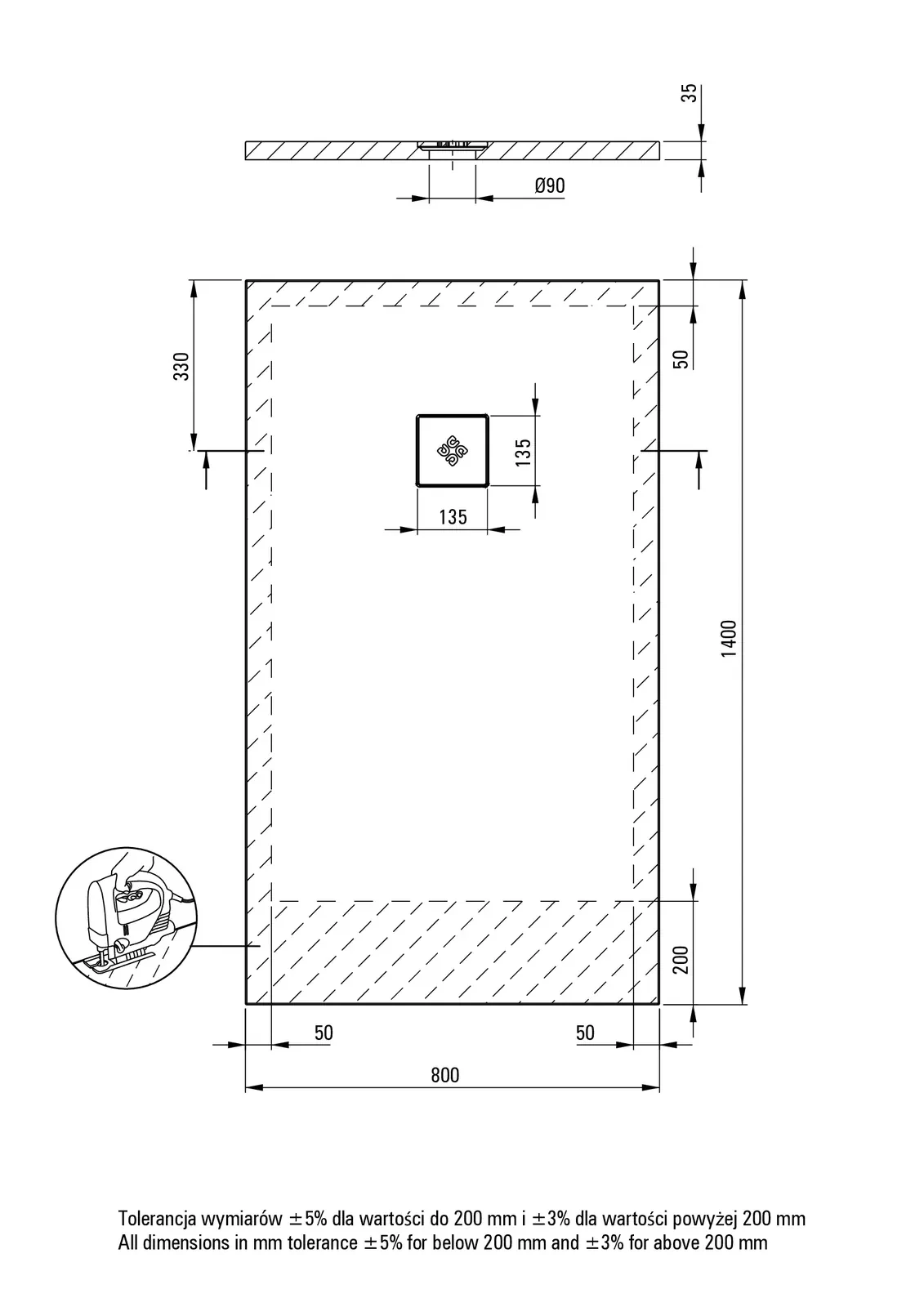 – Sposób instalacji: bezpośrednio na wylewce, na podparciu materiałem konstrukcyjnym, na poziomie podłogi