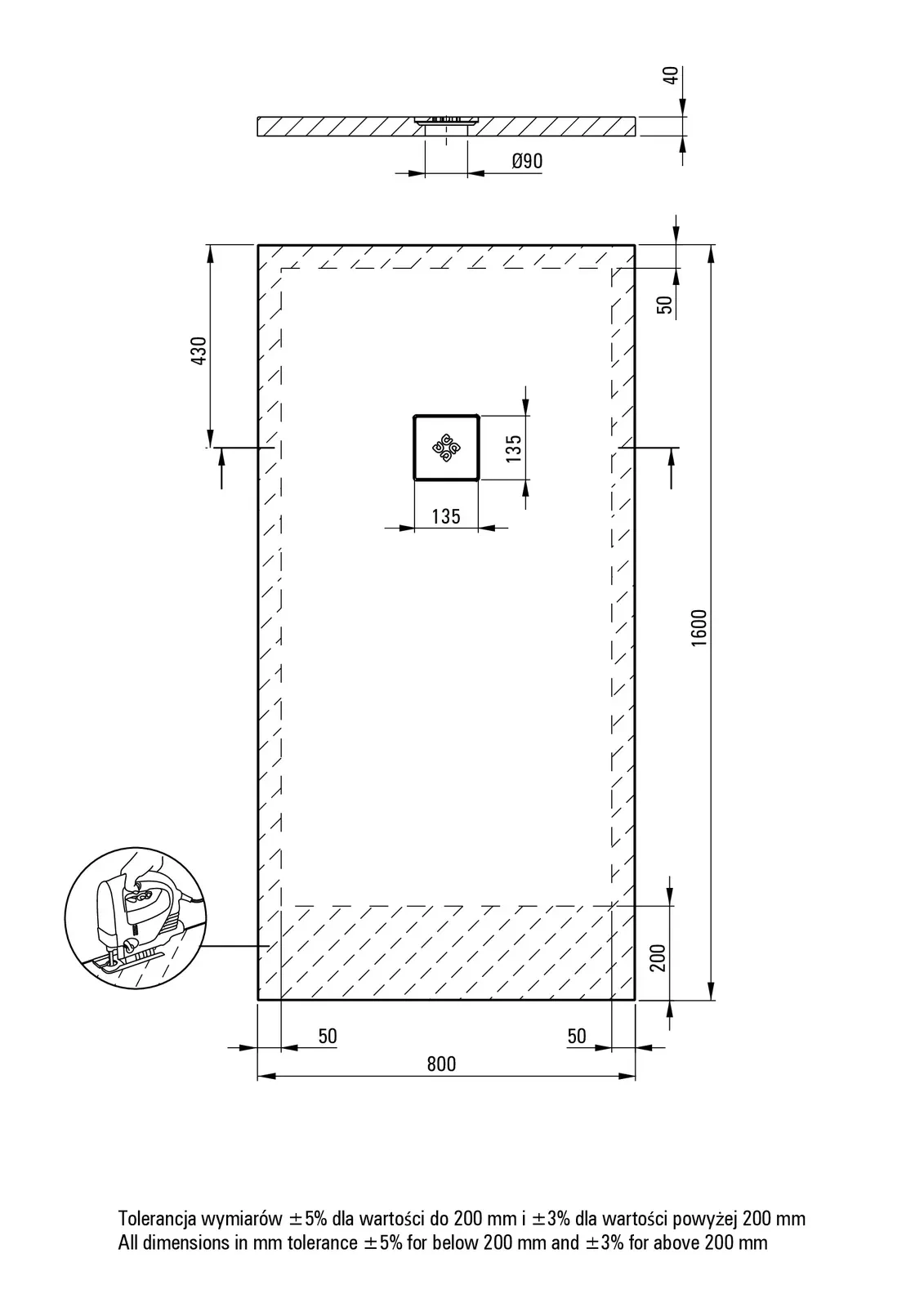– Sposób instalacji: bezpośrednio na wylewce, na podparciu materiałem konstrukcyjnym, na poziomie podłogi