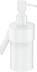 Elegancki dozownik jest doskonałym rozwiązaniem dla osób ceniących minimalizm i estetykę w łazience. Umożliwia łatwe i precyzyjne dozowanie mydła, zapewniając jednocześnie ład i porządek w strefie umywalki. Wykonany jest z wytrzymałej stali nierdzewnej i ma pojemność 250 ml. Jego matowe, białe wykończenie idealnie harmonizuje z pozostałymi dodatkami oraz armaturą łazienkową w tym samym kolorze. Dozownik montuje się do ściany.