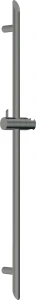 Drążek wykonany został z wysokiej jakości mosiądzu co zapewnia jego wytrzymałość i odporność na korozję. Posiada regulowany uchwyt na słuchawkę prysznicową, dzięki czemu możesz dostosować jej wysokość do indywidualnych preferencji. Drążek ma stałą długość - 80 cm. Wykończony jest w oryginalnym kolorze titanium, będącym kompromisem między czernią, szarością a brązem.