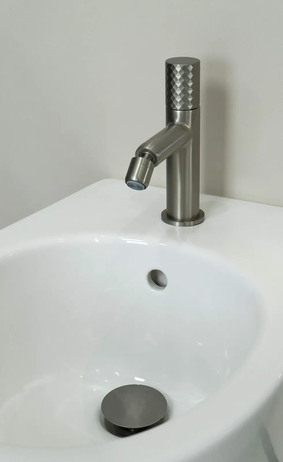 Bateria pochodzi z jubileuszowej, limitowanej serii Hexa, będącej częścią topowej kolekcji Silia. Jej charakterystycznym elementem jest biżuteryjna dźwignia o precyzyjnie wyfrezowanej strukturze, która nadaje jej unikalnego charakteru i podkreśla ekskluzywność całej kolekcji. Cała linia Silia to nowoczesna reinterpretacja klasycznych form armatury łazienkowej. Bateria bidetowa wyróżnia się łagodnie wygiętym kształtem, który nadaje jej lekkości i elegancji. Funkcjonalność baterii podnosi ruchoma końcówka wylewki, umożliwiająca wygodne kierowanie strumieniem wody. To rozwiązanie zwiększa komfort użytkowania i sprawia, że bateria doskonale sprawdzi się w nowoczesnych łazienkach.Wykończenie w stali szczotkowanej podkreśla minimalistyczny styl i gwarantuje odporność na ślady użytkowania. To wybór dla osób ceniących designerskie detale, najwyższą jakość i ponadczasową elegancję.