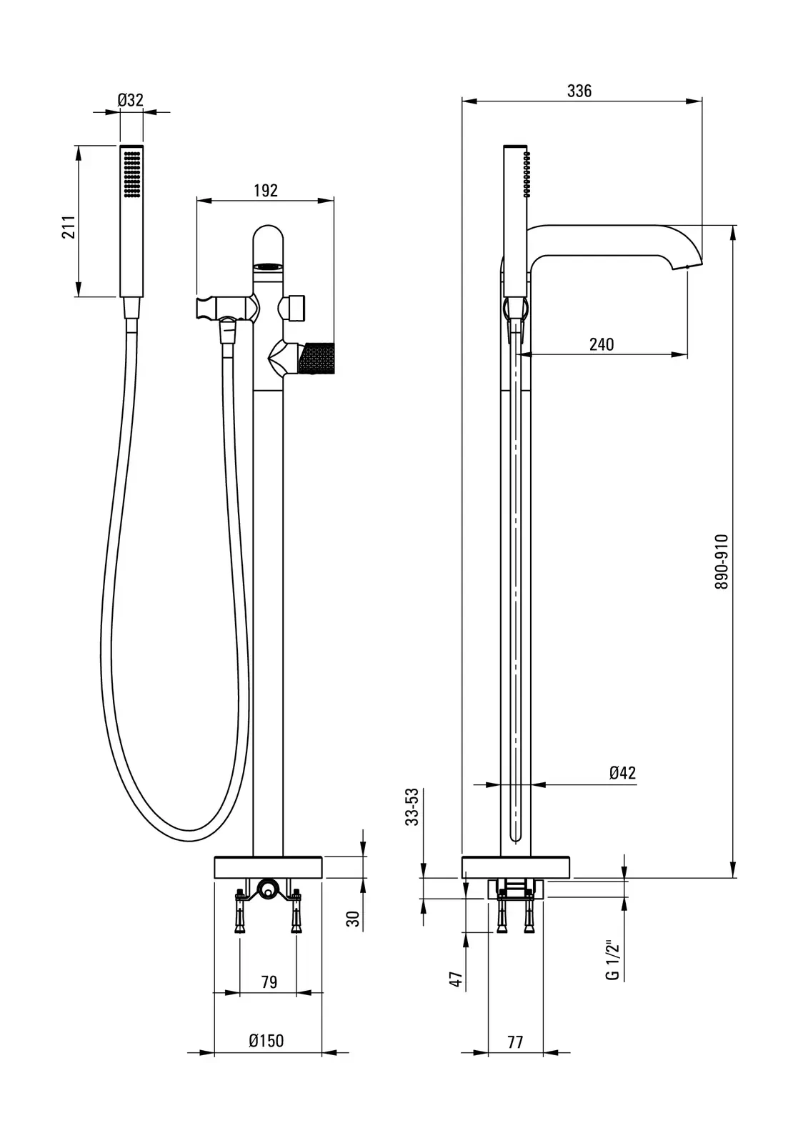 Deante Silia Hexa Bateria wannowa wolnostojąca z zestawem prysznicowym – dane techniczne i specyfikacja