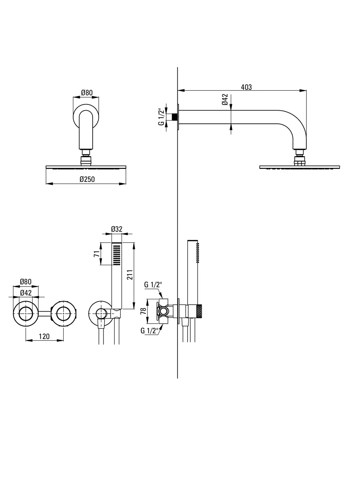 Deante Silia Hexa Zestaw prysznicowy podtynkowy z głowicą prysznicową – dane techniczne i specyfikacja