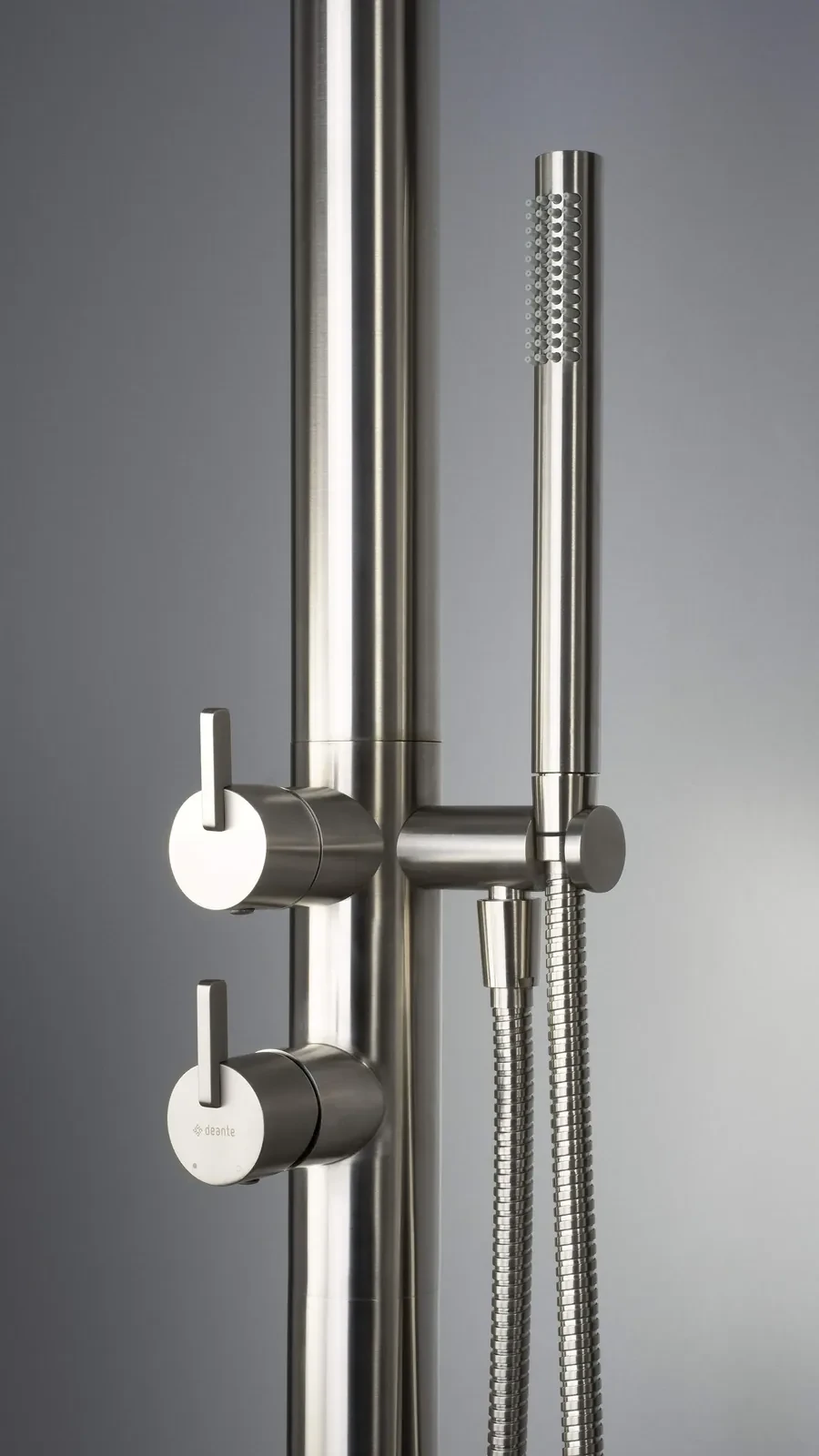 Deante Silia Kolumna prysznicowa podłogowa do ogrodu lub łazienki, stal szczotkowana, NQS_F4GM