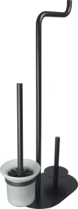 Stojak na papier Silia to niezwykle funkcjonalne akcesorium, które składa się z uchwytu na papier, uchwytu na zapas papieru oraz ze szczotki WC. Stojak jest niezwykle trwały, wykonany z mosiądzu. Czarne, matowe wykończenie doskonale sprawdzi się w nowoczesnych łazienkach i salonach kąpielowych.