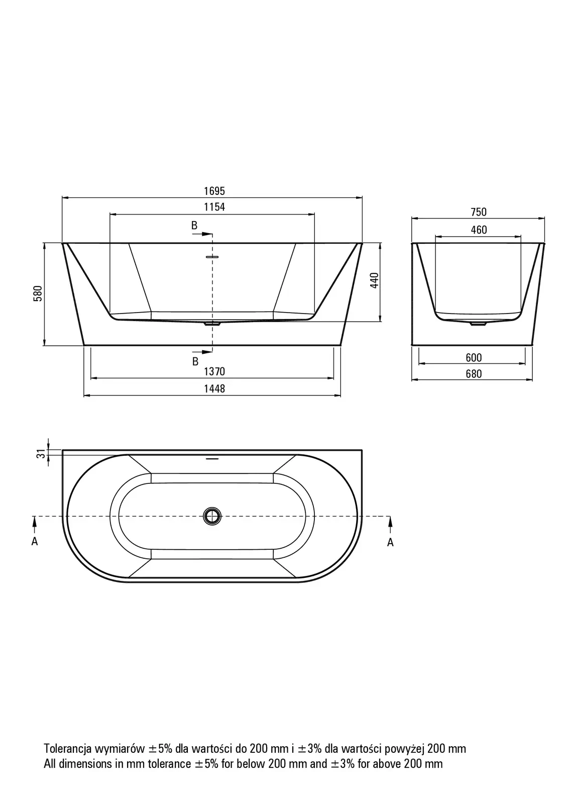Deante Silia Wanna akrylowa przyścienna/wolnostojąca – dane techniczne i specyfikacja
