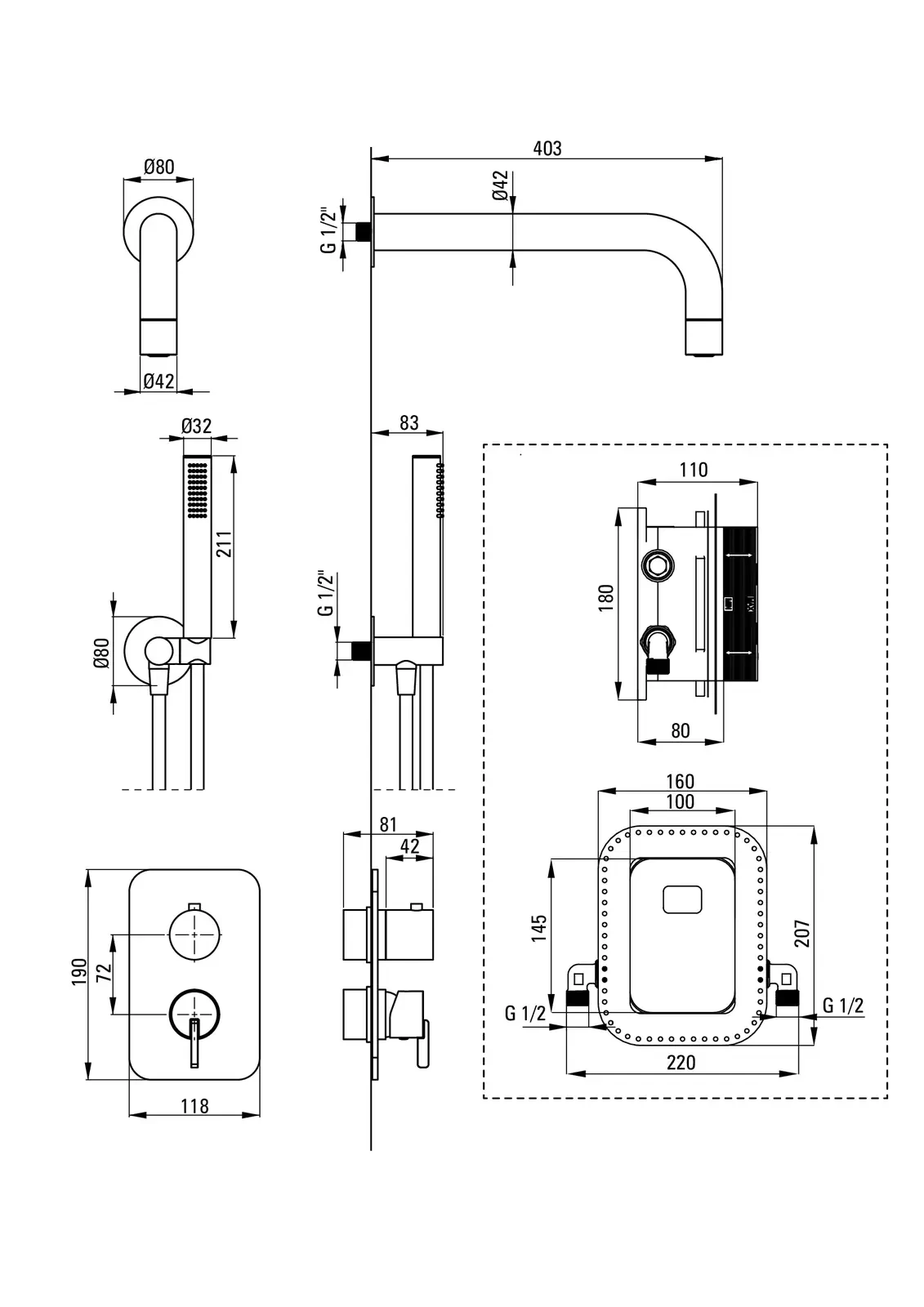 Deante Silia Zestaw prysznicowy podtynkowy z BOXem mieszaczowym – dane techniczne i specyfikacja