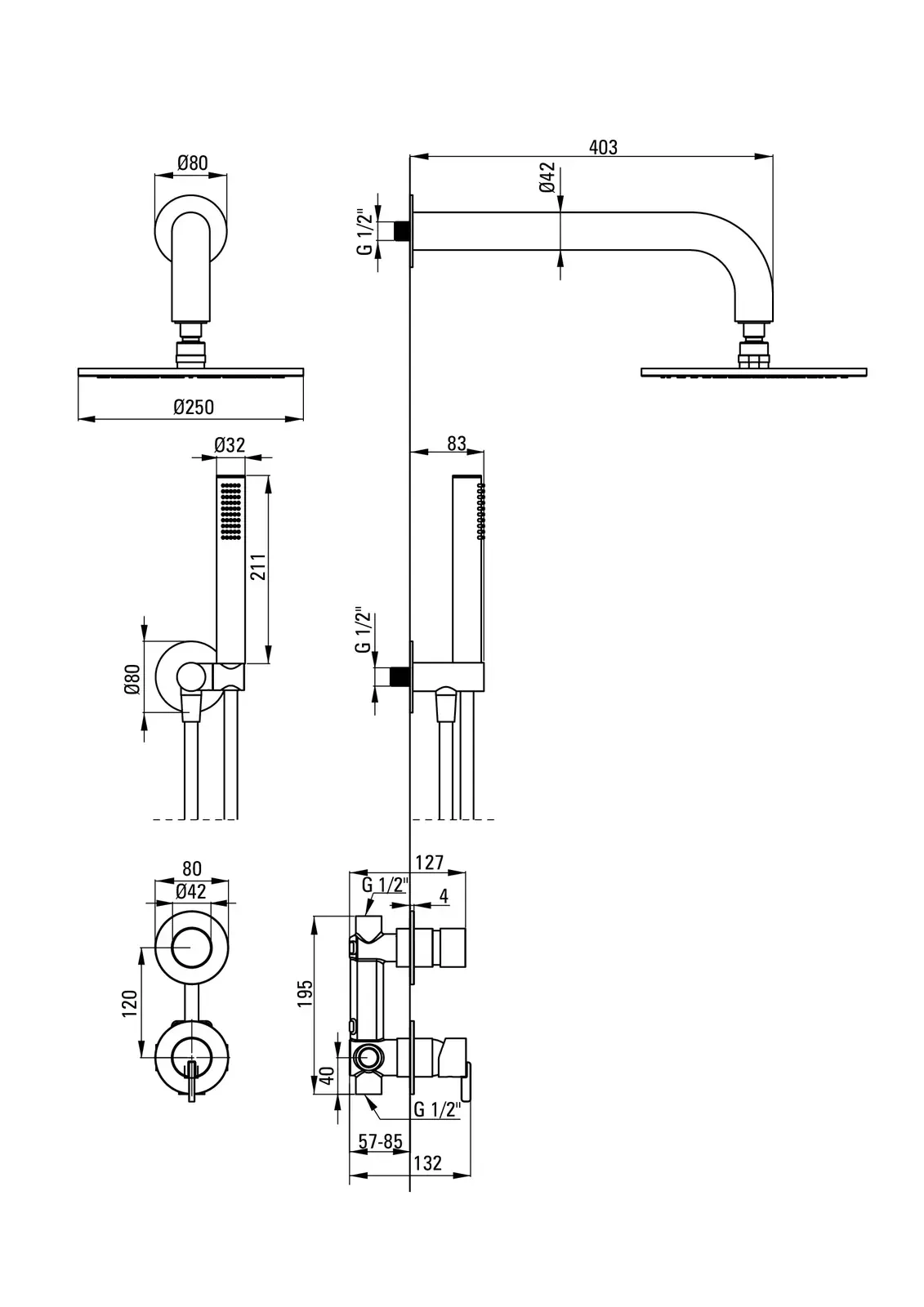 Set prysznicowy Silia składa się z wylewki ściennej wraz z głowicą natryskową, baterii podtynkowej, węża, słuchawki natryskowej i przyłącza kątowego. Bateria posiada ceramiczny, mechaniczny przełącznik funkcji. Głowica natryskowa oraz słuchawka wyposażone zostały w system Anti - calc ułatwiający utrzymanie armatury w czystości. Wąż z systemem Anti - twist nie skręca się podczas użytkowania. Przyłącze kątowe jest ruchome, dzięki czemu można dowolnie ustawić kąt nachylenia słuchawki. Całość wykończona jest w klasycznym, błyszczącym chromie.