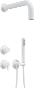 Set prysznicowy Silia składa się z wylewki ściennej wraz z główką natryskową, baterii, węża, słuchawki natryskowej i przyłącza kątowego. Główka prysznicowa zapewnia strumień wody o optymalnej mocy, tworząc efekt stożka. Bateria wyposażona jest w ceramiczny, mechaniczny przełącznik funkcji, gwarantujący trwałość i precyzję. Wąż prysznicowy, dzięki zastosowaniu technologii Anti-twist, nie plącze się, zapewniając komfort użytkowania. Słuchawka natryskowa wykonana została z wysokogatunkowej stali nierdzewnej i posiada przyjemny deszczowy strumień. Przyłącze kątowe jest ruchome, dzięki czemu można dowolnie ustawić kąt nachylenia słuchawki. Zestaw wykończony jest w estetycznym, matowym białym kolorze.