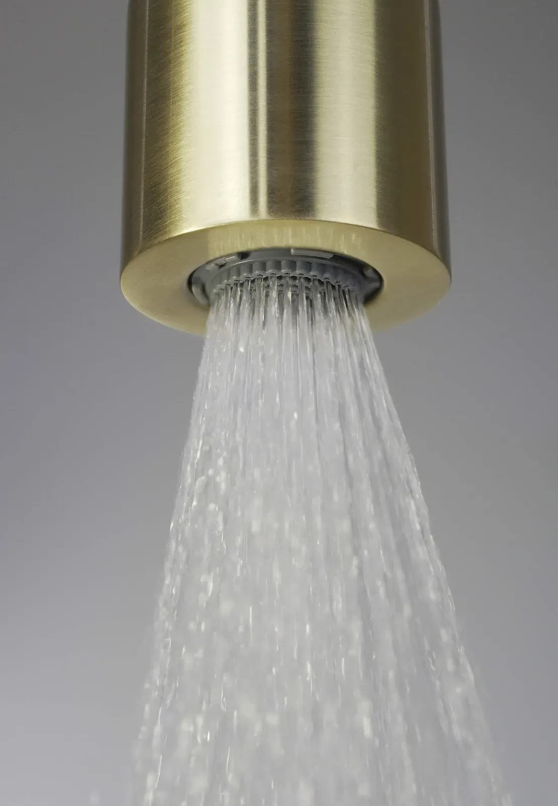 Set prysznicowy Silia składa się z wylewki ściennej wraz z główką natryskową, baterii, węża, słuchawki natryskowej oraz przyłącza kątowego. Główka natryskowa ma strumień, który przybiera kształt stożka o optymalnej intensywności. Bateria wyposażona jest w ceramiczny, mechaniczny przełącznik funkcji. Wąż z systemem Anti - twist nie skręca się podczas użytkowania. Słuchawka natryskowa wykonana została z wysokogatunkowej stali nierdzewnej i posiada przyjemny deszczowy strumień. Przyłącze kątowe jest ruchome, co pozwala na dowolne ustawienie kąta nachylenia słuchawki. Całość wykończona w złocie szczotkowanym.