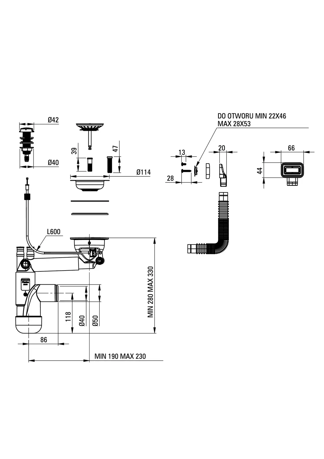– Syfon teleskopowy: Tak