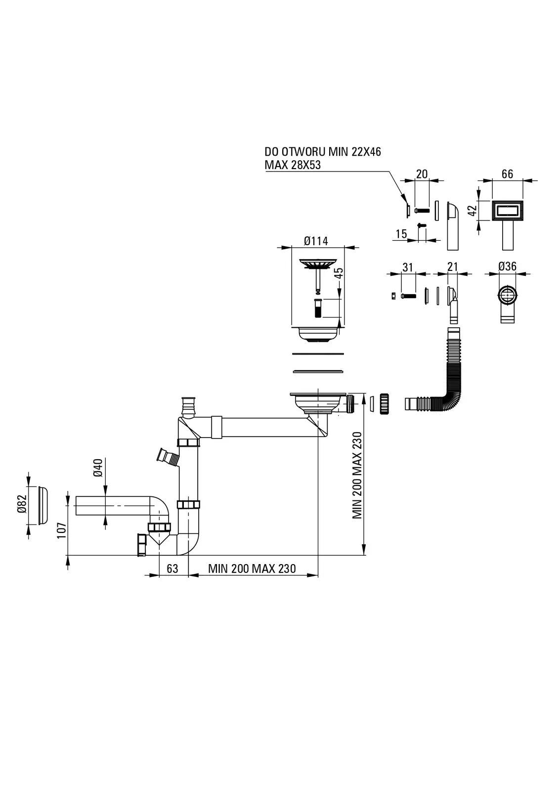 Deante Space-Saver Syfon do zlewozmywaka 1 – dane techniczne i specyfikacja