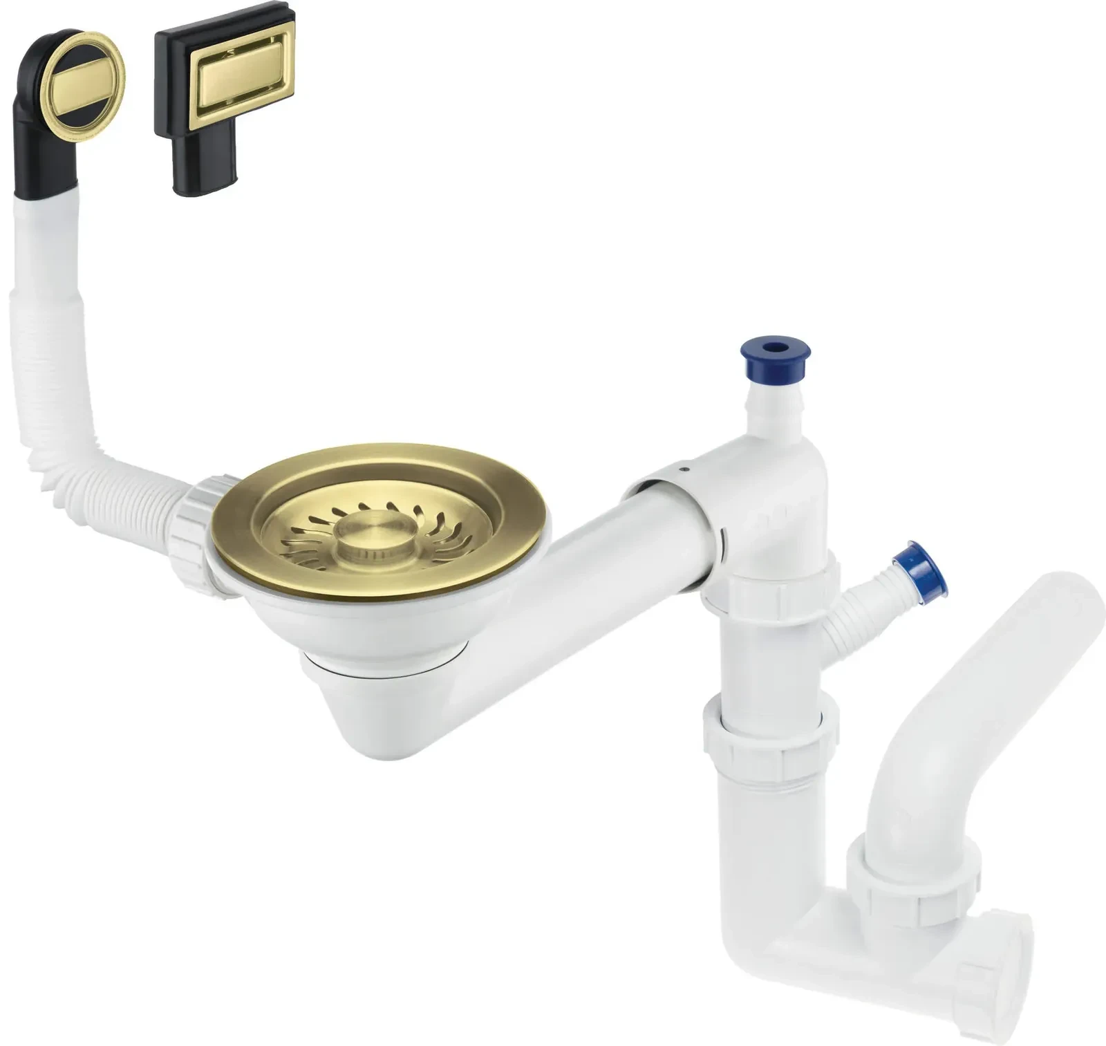 Syfon do 1-komorowych zlewozmywaków granitowych, stalowych oraz ceramicznych (ZCU_610A, ZCU_610B, ZCU_610D, ZCB_610H) to idealne rozwiązanie do każdej nowoczesnej kuchni. W zestawie znajduje się manualny korek oraz dwa rodzaje przelewów: okrągły i prostokątny, oba z zaślepkami. Model Space-saver został zaprojektowany tak, aby zajmować minimalną ilość miejsca w szafce pod zlewozmywakiem, co pozwala na efektywne zagospodarowanie przestrzeni. Wykończenie w kolorze złota szczotkowanego doskonale komponuje się z kuchennymi bateriami w tym samym kolorze, dodając elegancji i stylu każdej kuchni.