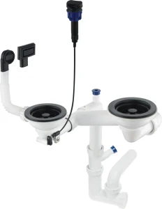 Syfon przeznaczony jest do wpuszczanych zlewozmywaków granitowych 1,5- oraz 2-komorowych. Wyposażony jest w automatyczny korek, który umożliwia zamykanie i otwieranie odpływu wody za pomocą pokrętła. Jest to model Space-saver, który dzięki minimalnej konstrukcji oszczędza sporo miejsca pod szafką. Syfon posiada w zestawie dwa rodzaje zaślepek: okrągłą i prostokątną. Obie, wraz z korkiem, wykończone są w eleganckim, czarnym macie.