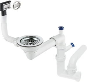 Syfon przeznaczony jest do granitowych i ceramicznych (ZCU_610A, ZCU_610B, ZCU_610C, ZCU_610D, ZCB_610H) zlewozmywaków 1-komorowych. To model Space-Saver, dzięki któremu uzyskasz sporo dodatkowego miejsca np. na kosze do segregacji śmieci. W zestawie znajduje się okrągły przelew oraz manualny korek.