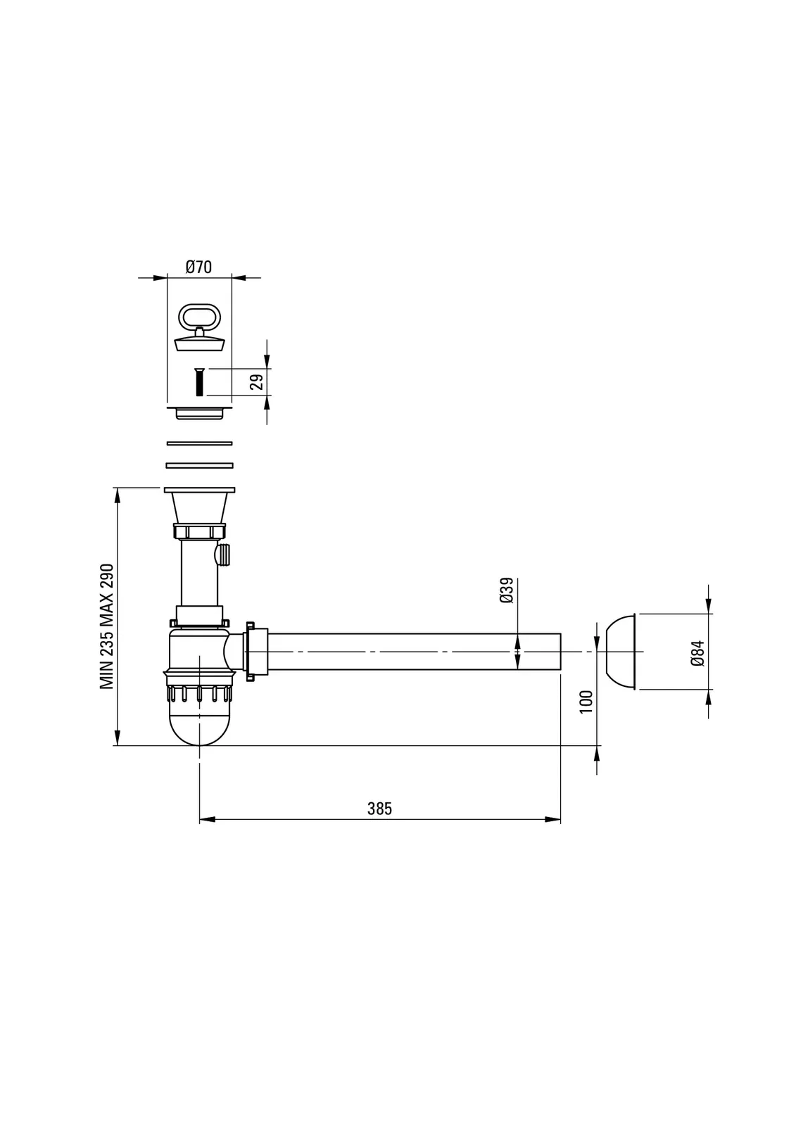 Syfon dedykowany jest do komory gospodarczej ZYK_010B. Wyposażony w praktyczny korek manualny, zapewnia wygodne użytkowanie. Można go łatwo podłączyć zarówno do pralki, jak i zmywarki. W komplecie znajdują się uchwyty mocujące i śruby, dzięki czemu instalacja jest szybka i prosta.