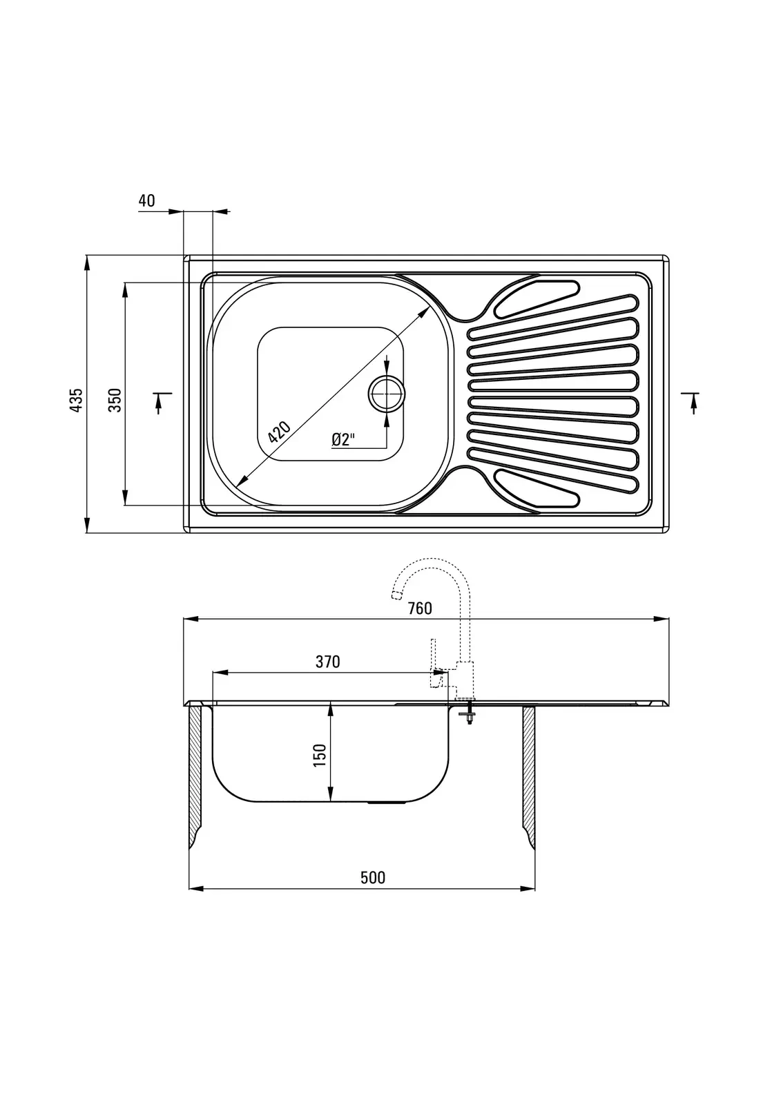 Zlewozmywak Techno wykonany jest ze stali 201, w eleganckim satynowym wykończeniu. Stal posiada naturalne właściwości antyseptyczne, nie przyjmuje zapachów, a jej idealnie gładka powierzchnia jest łatwa do utrzymania w czystości. W zestawie znajduje się korek manualny.