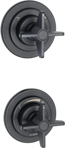Bateria natryskowa Temisto wyróżnia się oryginalnymi, stylizowanymi pokrętłami. Jest to model podtynkowy, który zapewnia wyższy poziom higieny i daje większe możliwości w kreowaniu przestrzeni łazienkowej. Temisto to bateria jednouchwytowa mieszaczowa. Jeden z uchwytów jest progresywną głowicą mieszającą, kręcąc nim w prawą stronę, woda stopniowo staje się coraz cieplejsza, aż do uzyskania pożądanej temperatury. Drugie pokrętło to ceramiczny przełącznik funkcji, który umożliwia przełączenie źródła wody między deszczownicą a słuchawką prysznicową. Bateria wykonana jest z trwałego i wytrzymałego mosiądzu. Czarne, matowe wykończenie z powodzeniem sprawdzi się zarówno w tradycyjnych jak i nowoczesnych aranżacjach.