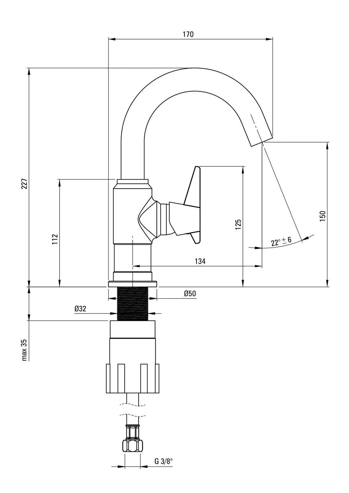 – Długość wylewki: 134