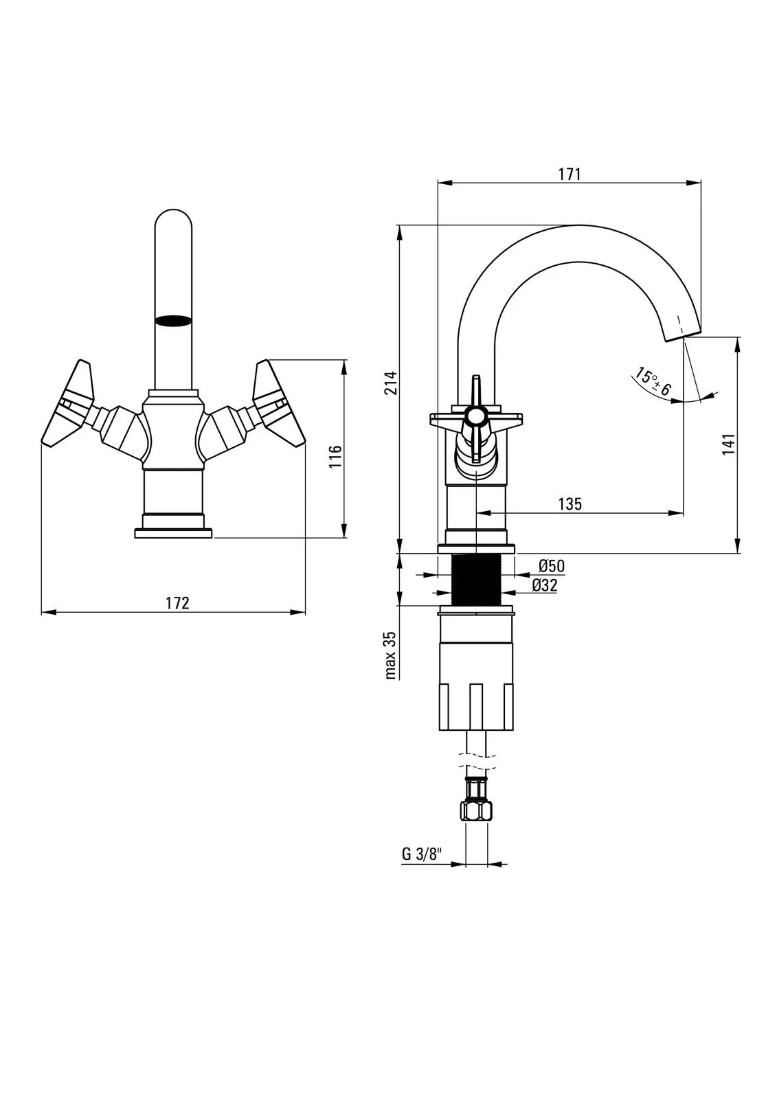 – Długość wylewki: 135