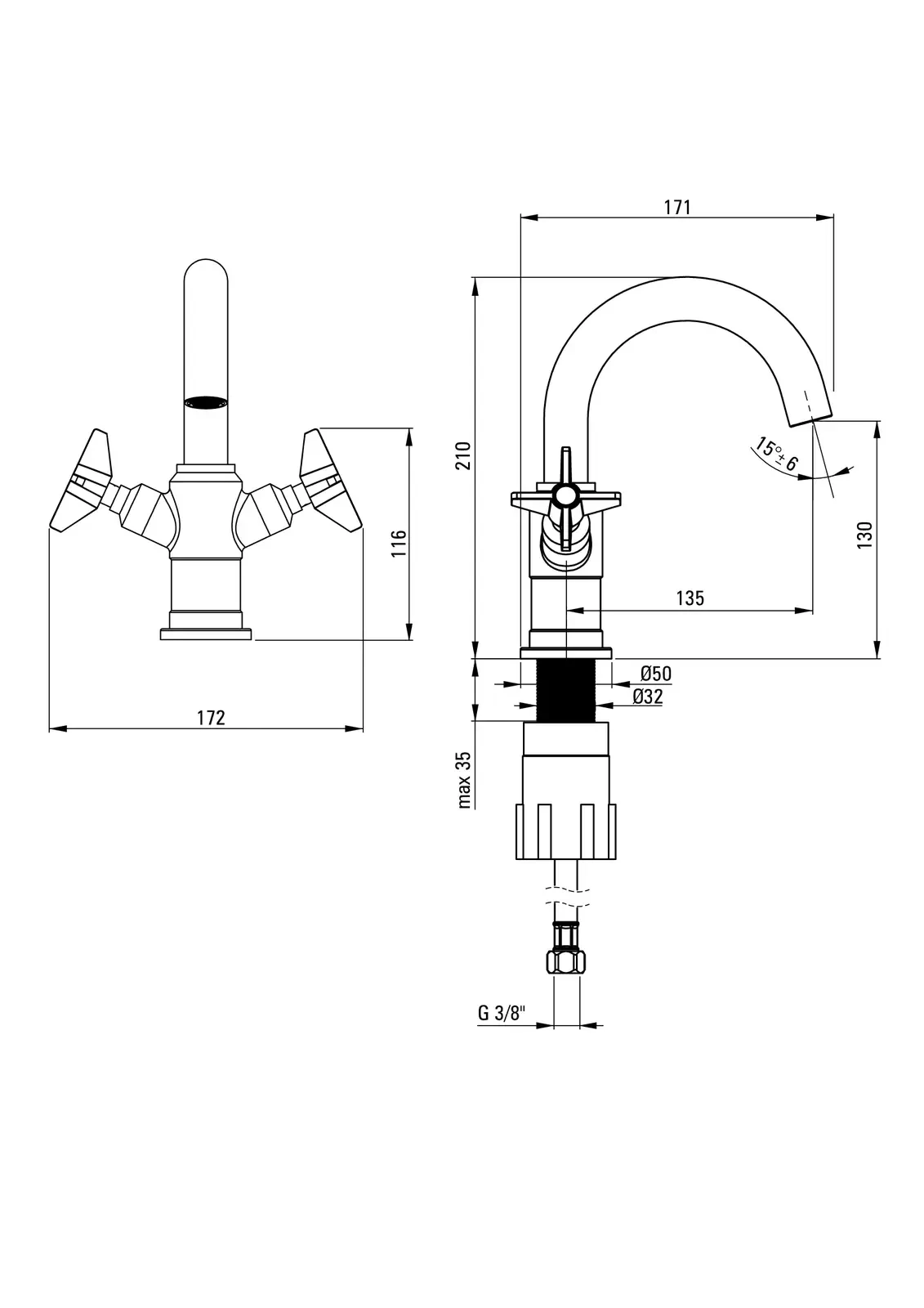 – Długość wylewki: 135