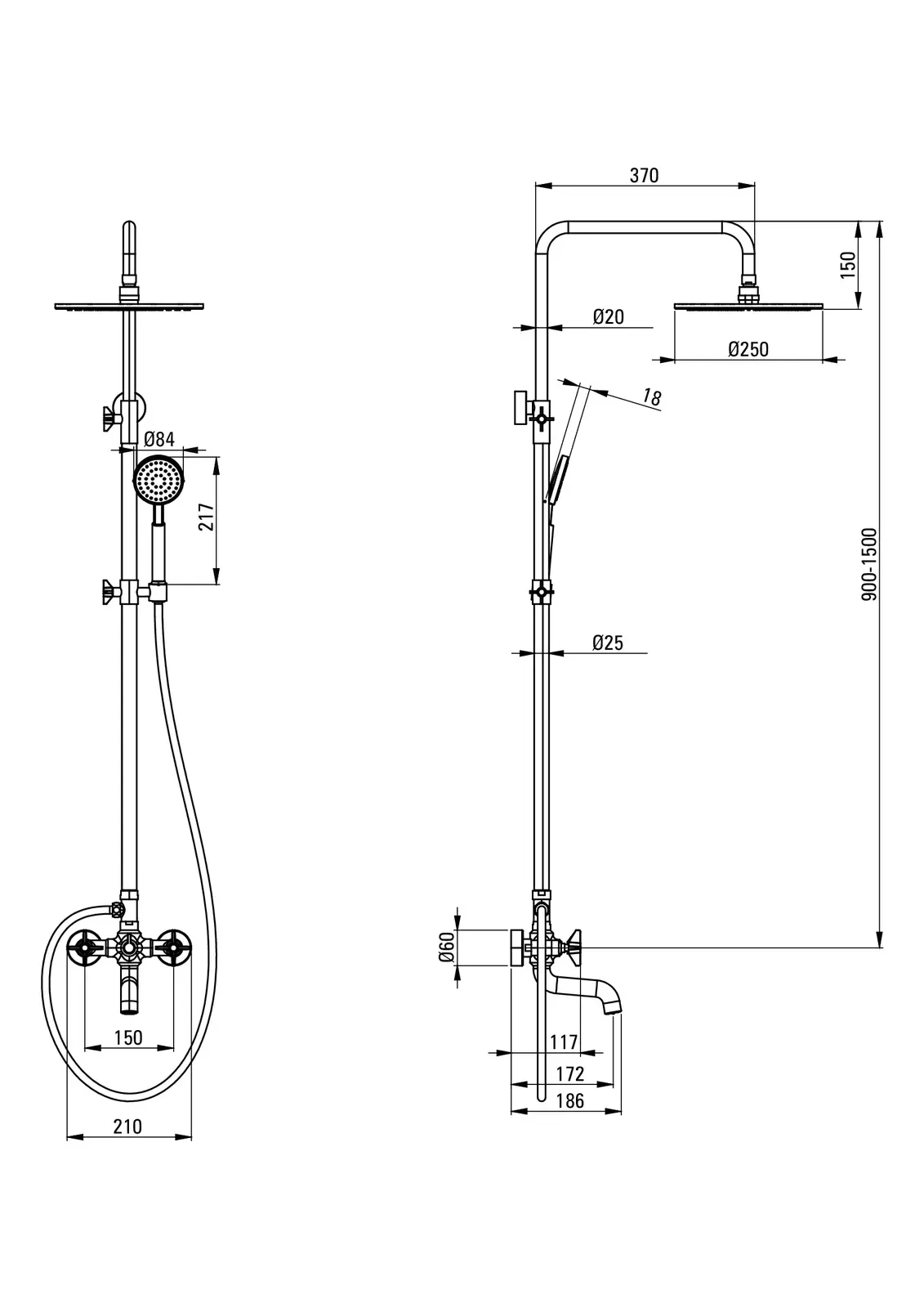 – Regulacja wysokości drążka od (mm): 900