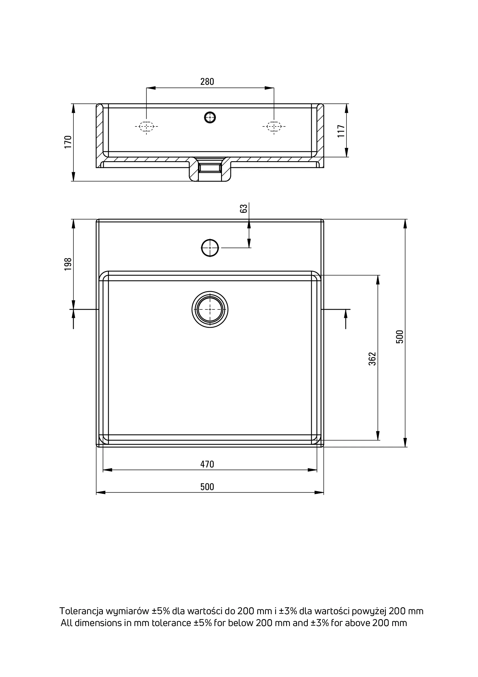 Deante Temisto Umywalka ceramiczna nablatowa/ścienna z miejscem na baterię – dane techniczne i specyfikacja