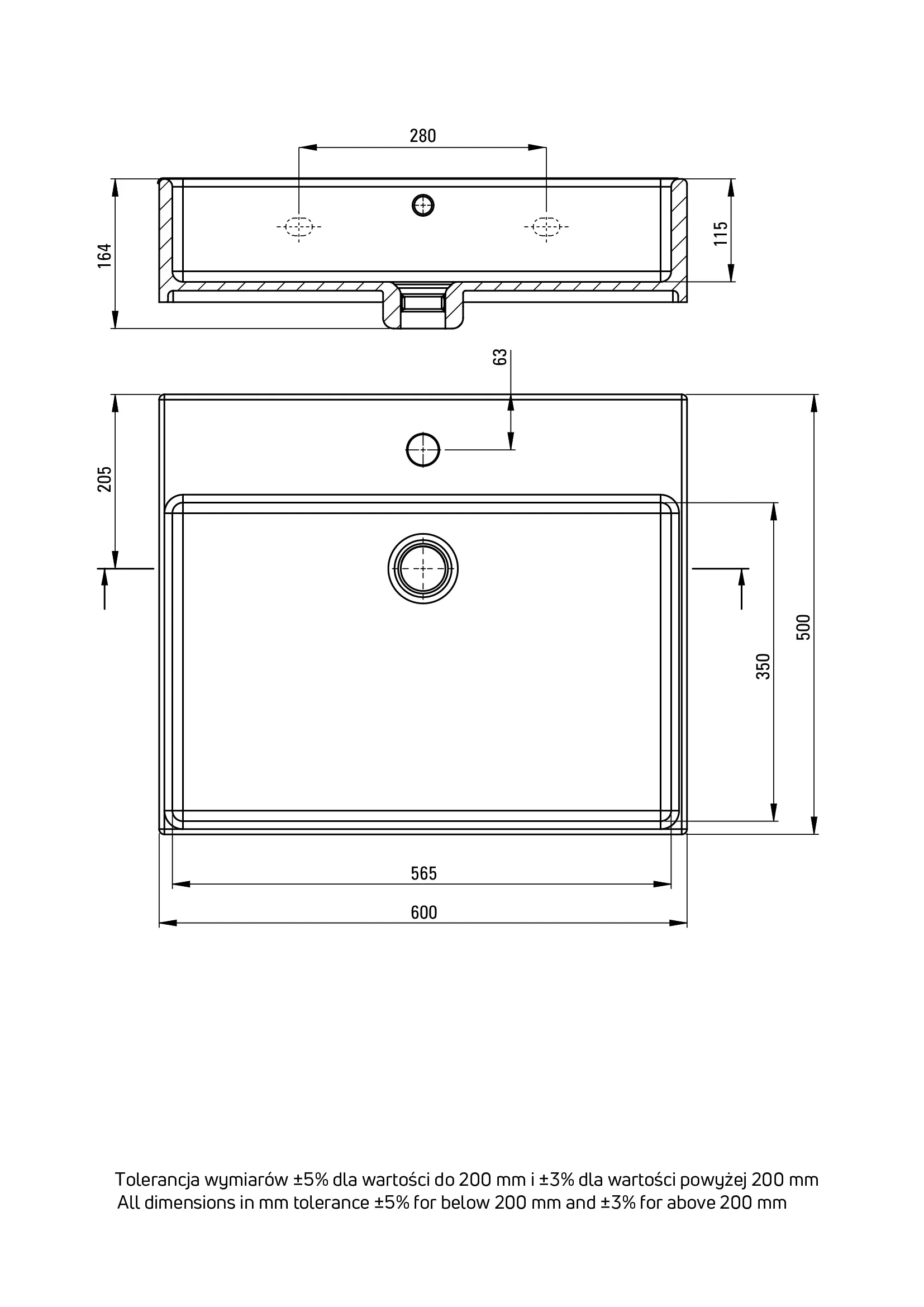 Deante Temisto Umywalka ceramiczna nablatowa/ścienna z miejscem na baterię – dane techniczne i specyfikacja
