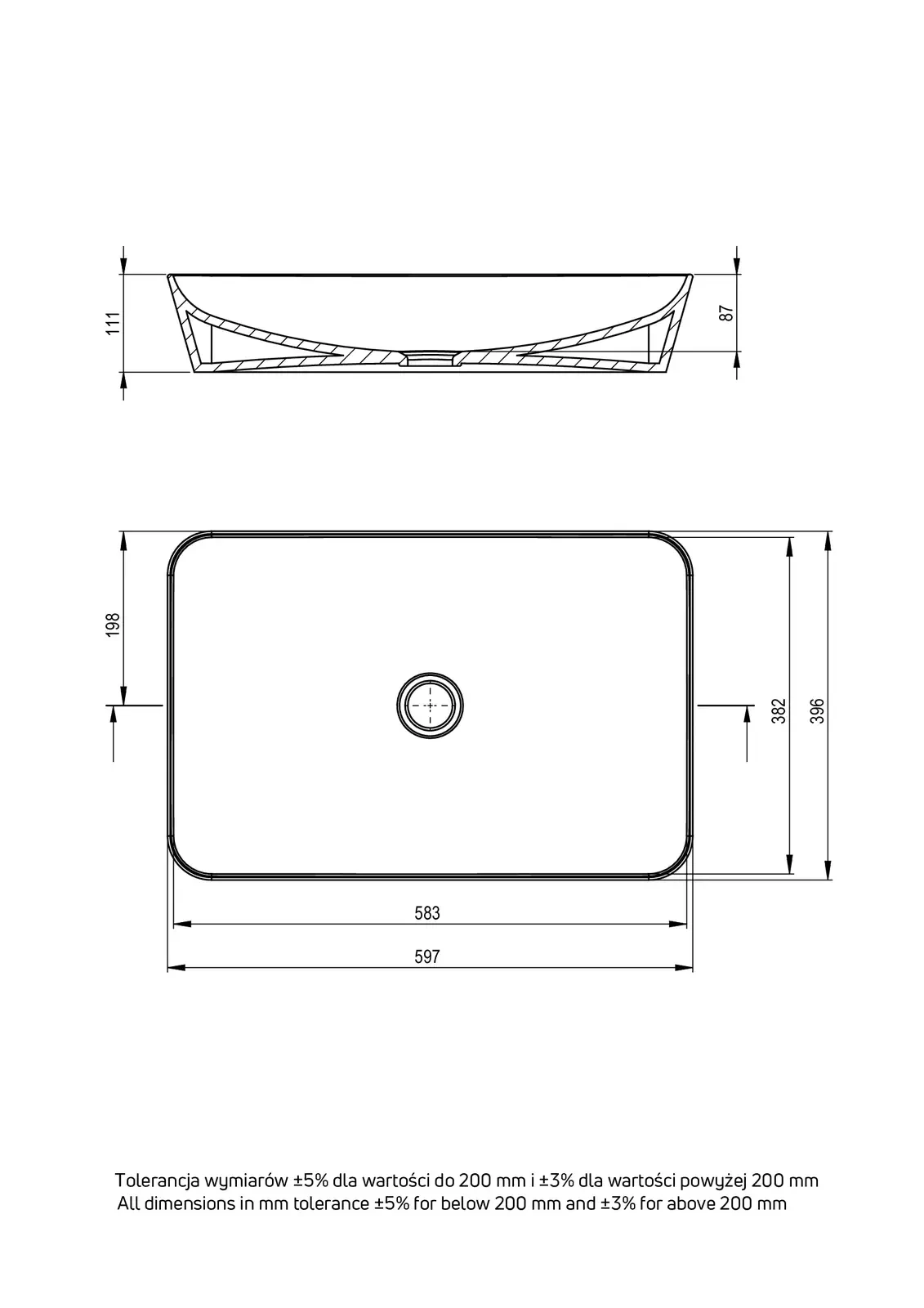 Deante Tess Umywalka ceramiczna nablatowa – dane techniczne i specyfikacja