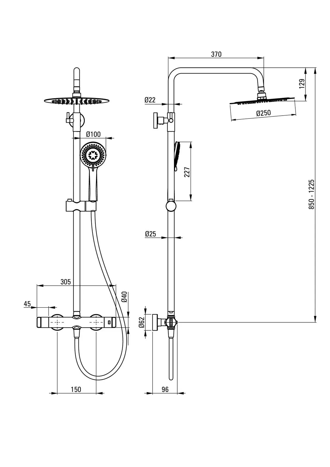 – Regulacja wysokości drążka do (mm): 1225