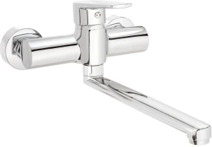Bateria zlewozmywakowa ścienna cechuje się solidnym wykonaniem i ponadczasowym chromowym wykończeniem. Mosiężny korpus, ceramiczna głowica i obrotowa wylewka ze stali nierdzewnej zapewniają trwałość i niezawodność produktu. Bateria wyposażona jest w aerator, który napowietrza strumień wody i tym samym ogranicza jej zużycie. Błyszczące wykończenie wprowadzi nutę elegancji zarówno w klasycznych, jak i w nowoczesnych kuchniach.