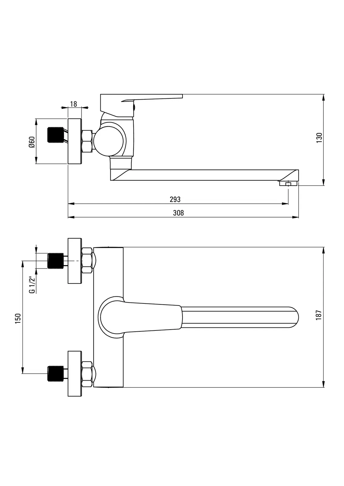 – Długość wylewki: 293