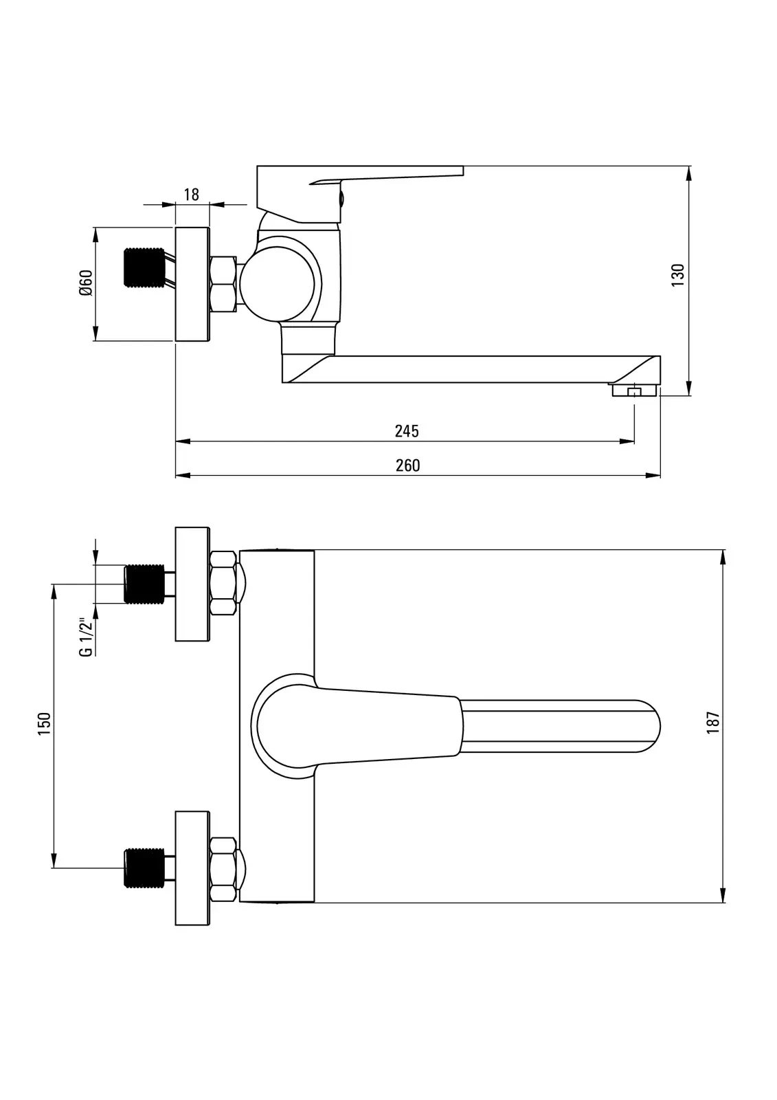 Deante Tubo Bateria umywalkowa ścienna – BUT_050M