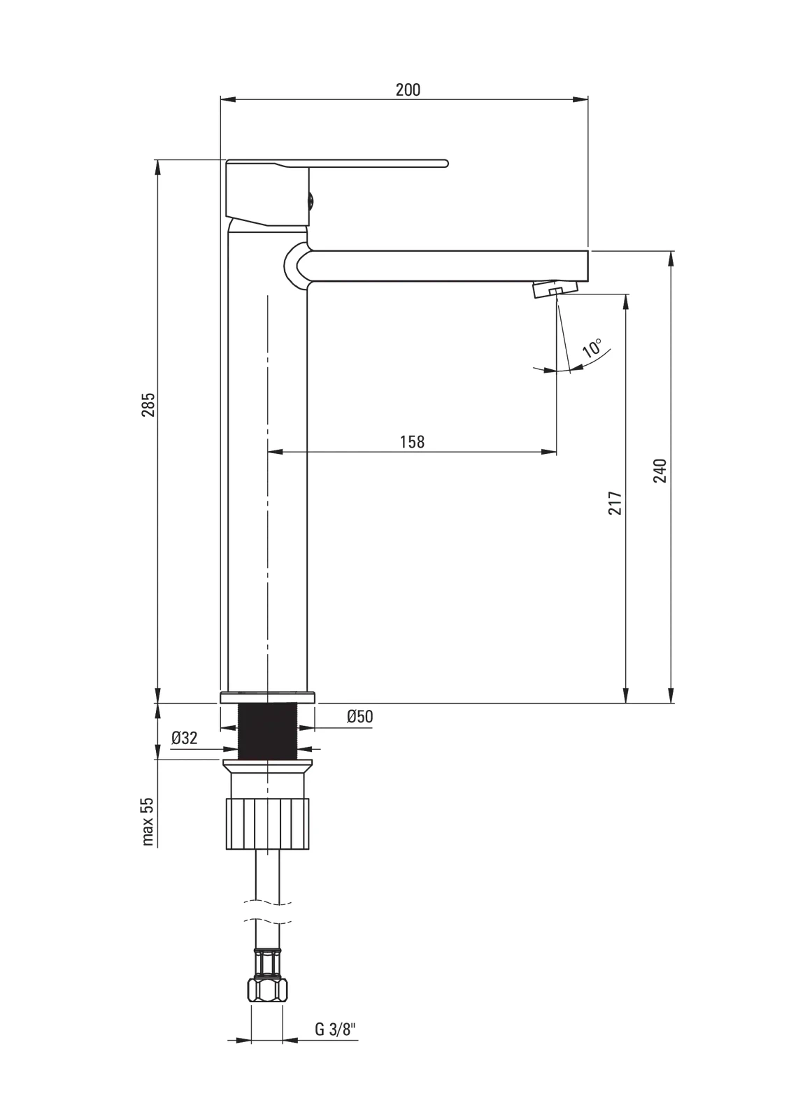 Deante Tubo Bateria umywalkowa wysoka – dane techniczne i specyfikacja
