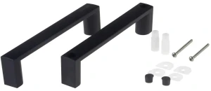 Wymienny komplet uchwytów do drzwi kabiny. Uchwyty mają otwory montażowe FI 4mm, a ich rozstaw to 140 mm. Wykończone są w matowym, czarnym kolorze.