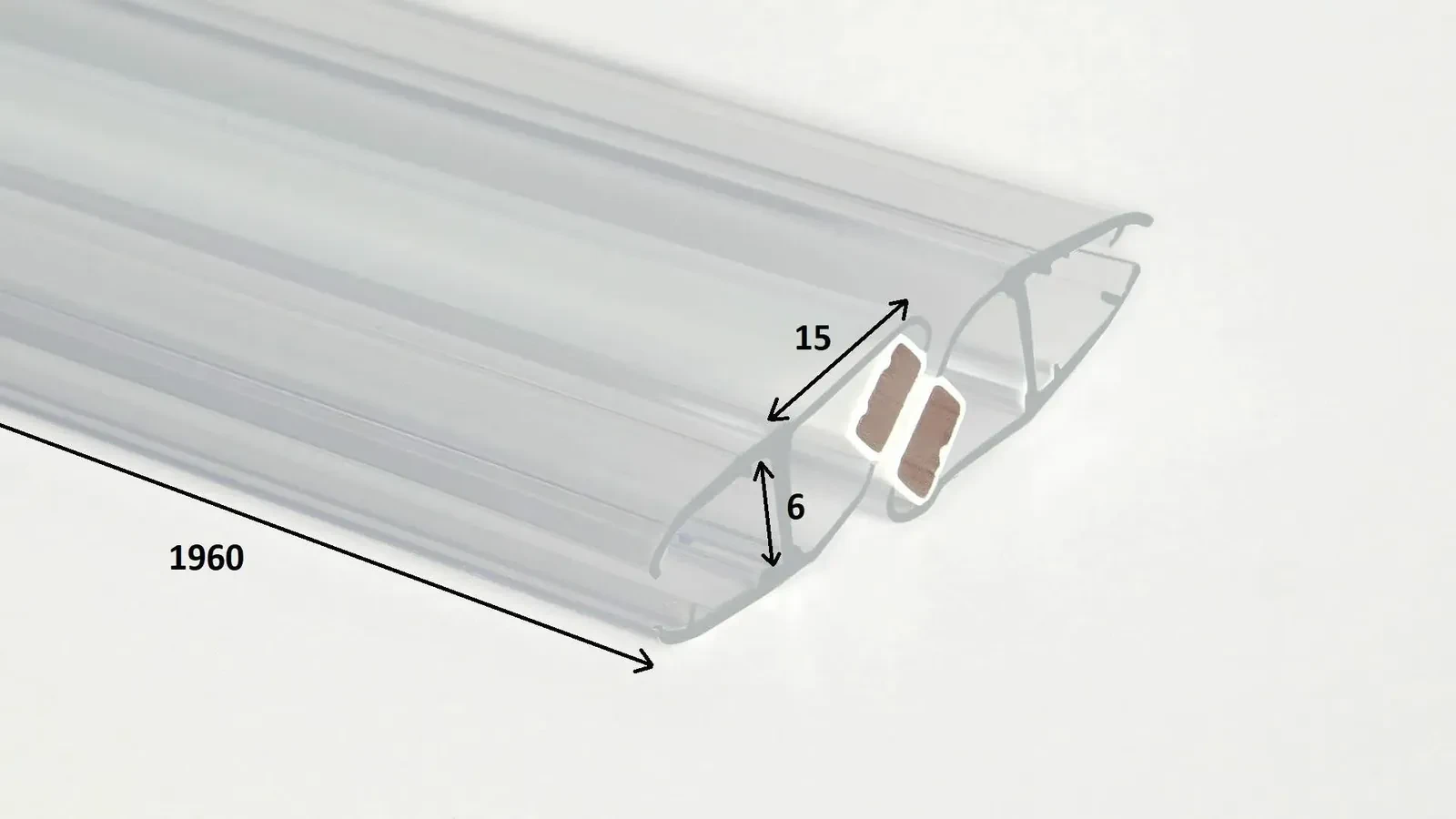 Komplet transparentnych uszczelek magnetycznych, przeznaczonych do szyb o grubości 6 mm. Uszczelki mają długość 1960 mm i pasują do kabin z serii Kerria Plus.