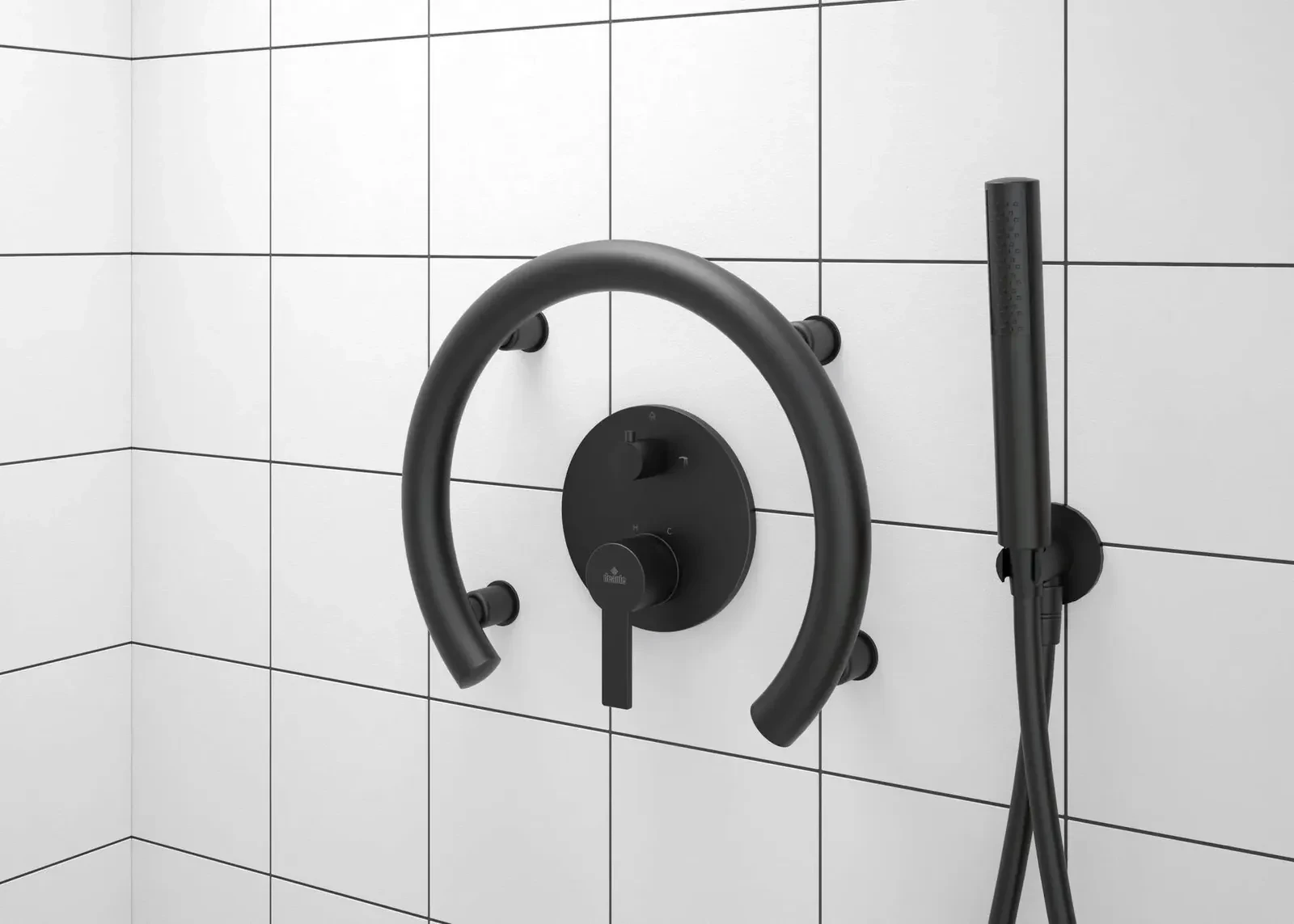 Czarny uchwyt ścienny w kształcie podkowy Vital marki Deante zachwyca niecodziennym designem. Kształt podkowy sprawi, że nikt nie przejdzie obok tego elementu obojętnie. Co więcej, czarny kolor przyczyni się do tego, że Twoja łazienka zyska wyjątkowy charakter. Instalacja jest prosta i możliwa z wybraniem jednej z kilku pozycji. Do tego możesz zamontować produkt w bezpośrednim sąsiedztwie baterii podtynkowej. Zapewnisz sobie tym sposobem komfort i dużą wygodę. Szczególnie przydatny w domach, gdzie mieszkają osoby starsze, z ograniczoną sprawnością ruchową oraz dzieci. Maksymalny udźwig wynosi tutaj 150 kilogramów. Ponadto, wysokiej jakości stal nierdzewna to synonim wytrzymałości. Wszystko to składa się na to, że każda osoba wymagająca pomocy zyska dobre wsparcie, jeśli chodzi o realizację podstawowych potrzeb i niekłopotliwe korzystanie z łazienki. Uchwyt ścienny w kształcie podkowy ma też gładką powierzchnię, łatwą do systematycznego sprzątania. Dlatego bez kłopotu utrzymasz ten element w czystości.