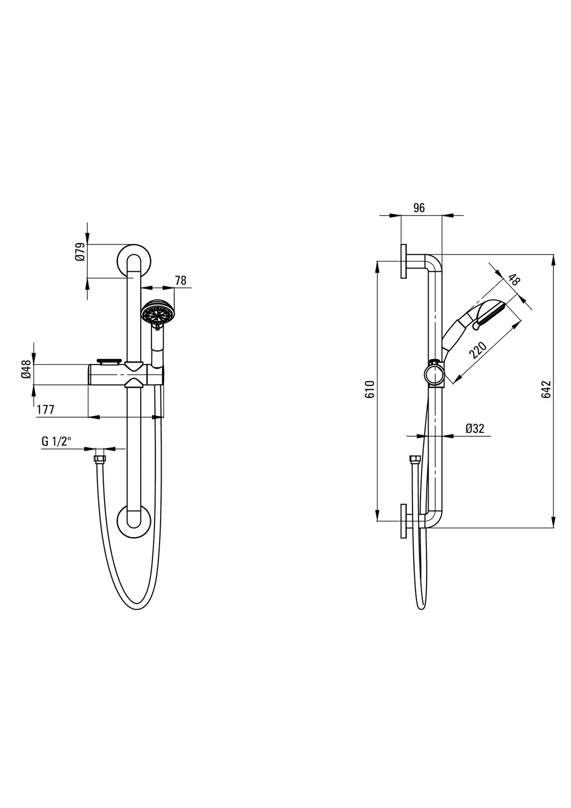 Zestaw prysznicowy VITAL składa się z 3-funkcyjnej słuchawki prysznicowej oraz podwójnie plecionego węża ze stali nierdzewnej. Słuchawka posiada wygodną nakładkę, na której nie ślizgają się ręce oraz regulowaną wysokość. Ponadto drążek pełni również funkcję uchwytu i ma udźwig 100kg. Zestaw przeznaczony jest do montowania z baterią wannową lub prysznicową.