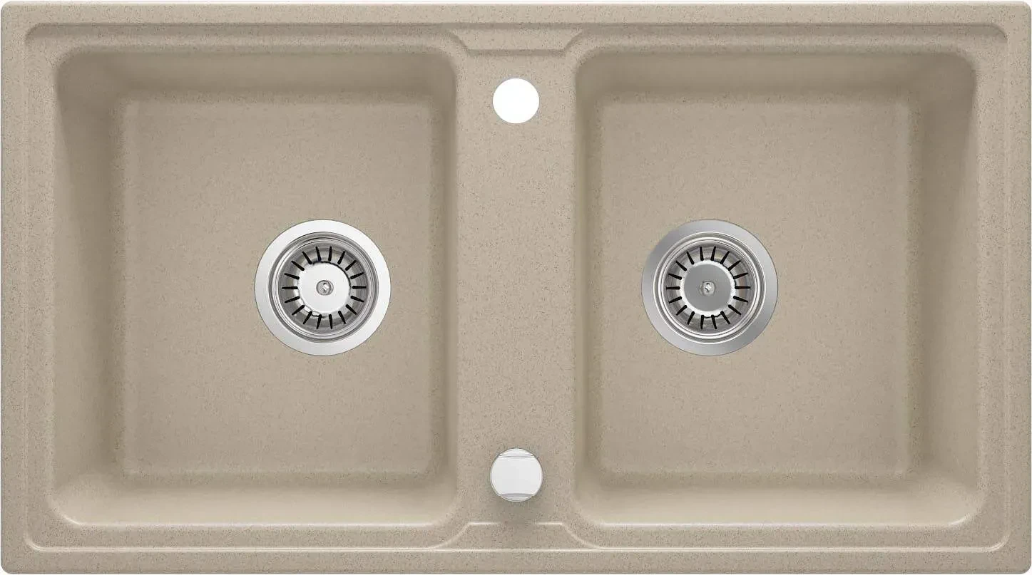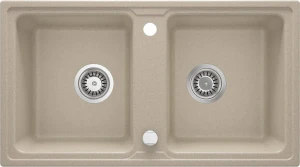 Piaskowy, granitowy zlewozmywak 2-komorowy Zorba z dwiema przestronnymi, prostopadłościennymi komorami to produkt, który doskonale prezentować się będzie w klasycznych lub rustykalnych aranżacjach kuchni. Ciepły, piaskowy odcień akcesorium będzie efektownie kontrastować z drewnianym blatem bądź idealnie wtopi się w przestrzeń roboczą kuchni, zaaranżowaną za pomocą jasnego kamienia lub kompozytu. Prezentowany tu duży zlewozmywak, idealny dla osób, które lubią gotować, wykonany został z granitu i charakteryzuje się wszystkimi zaletami typowymi dla tego niezwykle twardego i odpornego na użytkowanie materiału. Należy do nich odporność na przebarwienia, zarysowania, szok termiczny, temperaturę 250 stopni jak i uderzenia. Ponadto zlewy z kolekcji posiadają właściwości hydrofobowe, co oznacza, że ich powierzchnia nie tylko nie przepuszcza cząsteczek wody, ale także je odpycha, dzięki czemu są dużo łatwiejsze do utrzymania w czystości. Wszystkie te zalety, jak również współczesny, ascetyczny design, eleganckie kolory i uniwersalny charakter sprawiły, że kolekcja zlewozmywaków Zorba wyróżniona została tytułem finalisty konkursu Dobry Wzór 2014 r.