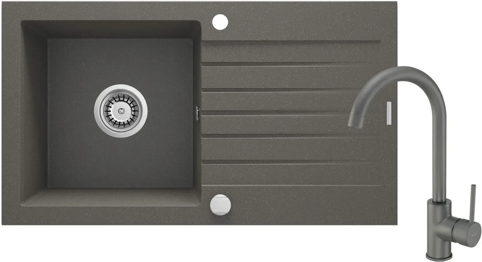 Deante Zorba Zlewozmywak granitowy z baterią 1-komorowy z ociekaczem, antracyt metalik, ZQZVT113