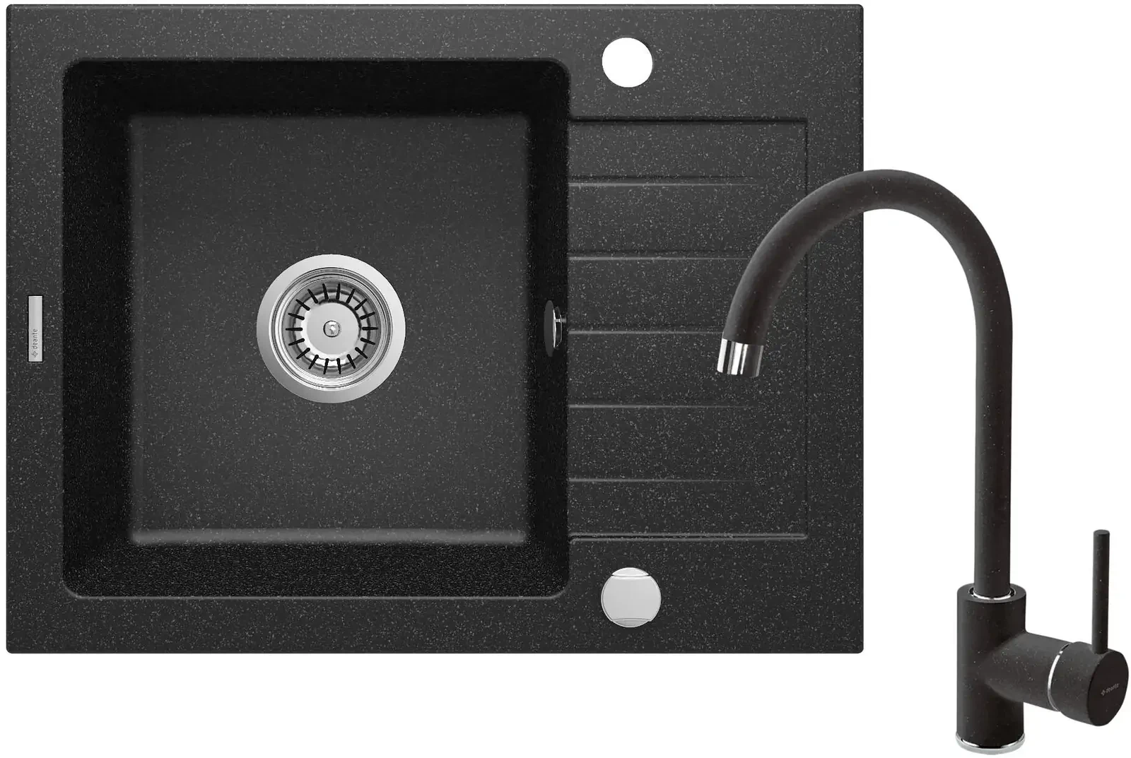 Deante Zorba Zlewozmywak granitowy z baterią 1-komorowy z ociekaczem, grafit, ZQZA211A