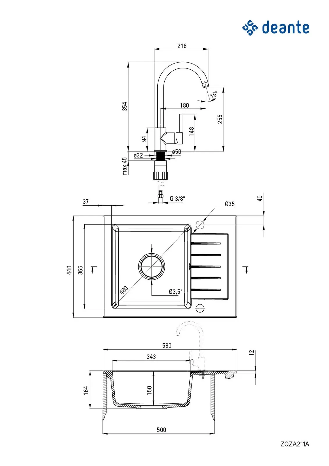 Deante Zorba Zlewozmywak granitowy z baterią 1 – dane techniczne i specyfikacja