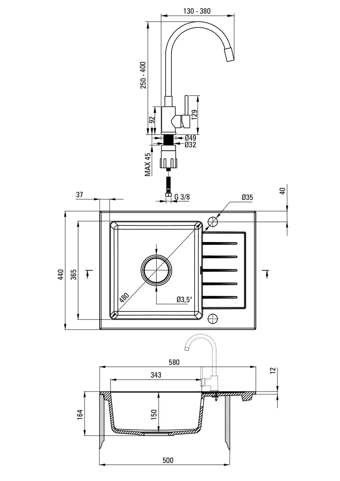 Deante Zorba Zlewozmywak granitowy z baterią 1 – dane techniczne i specyfikacja