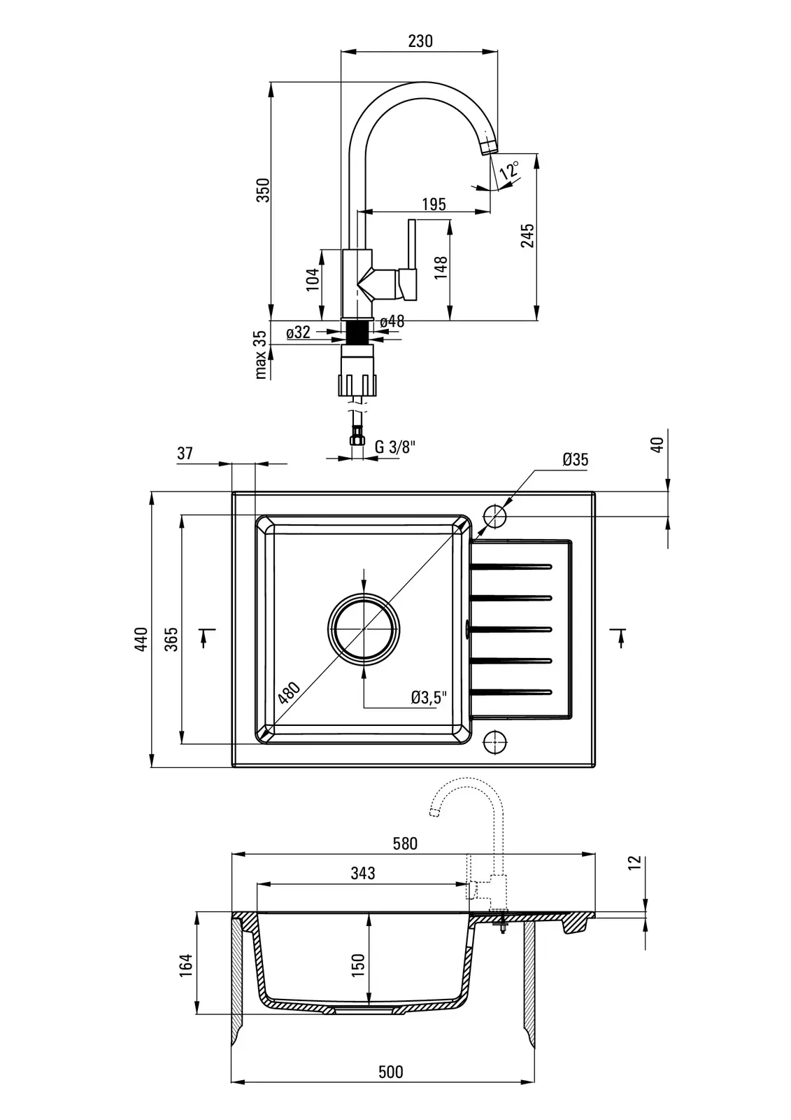 Deante Zorba Zlewozmywak granitowy z baterią 1 – dane techniczne i specyfikacja